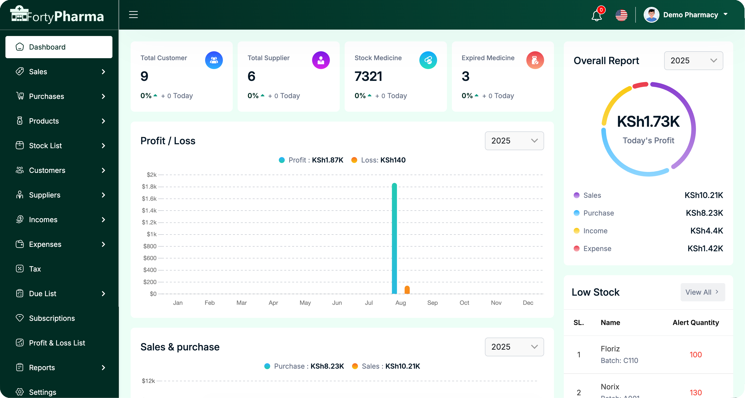 Track medicines, batches, expiry dates, and stock levels in real time.